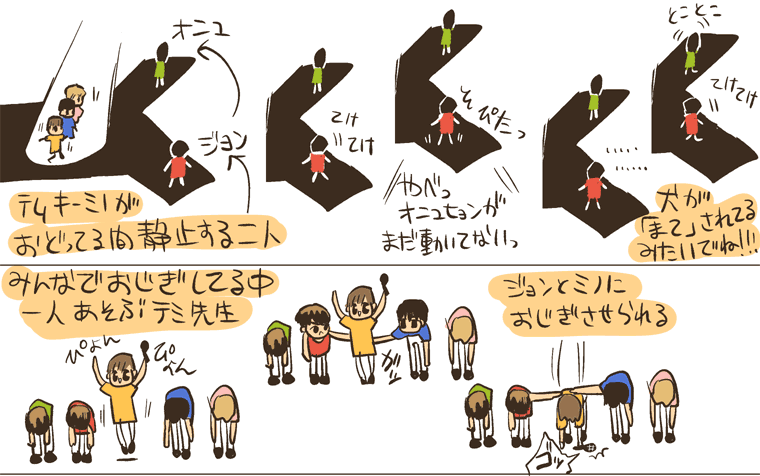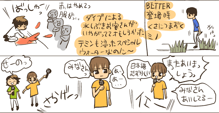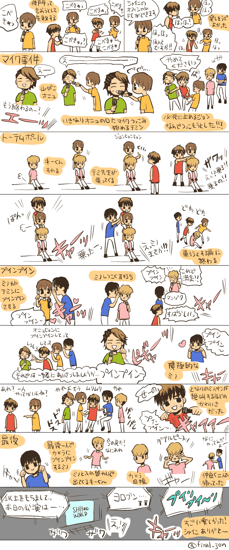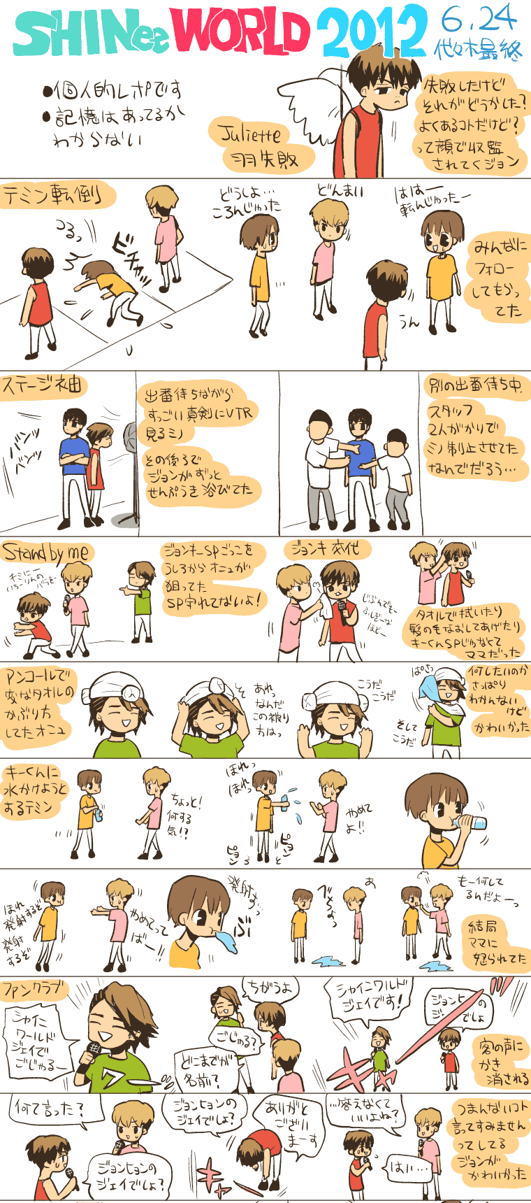 そしたらキーくんがうずくまるみたいな土下座みたいなポーズして、ジョンが笑いながらバシっとしてた。その間オニュはずっとニコニコ立ってた~